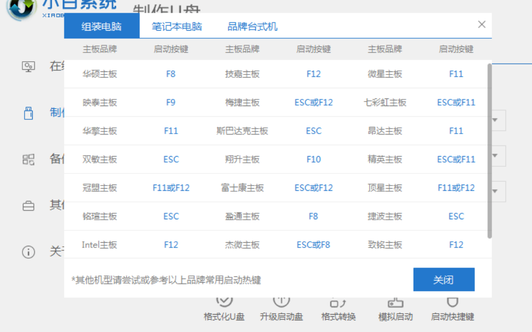 7.不知道啟動(dòng)項(xiàng)熱鍵的也可以點(diǎn)擊快捷鍵大全查看。