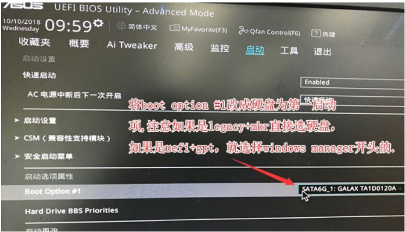 5、繼續(xù)把boot option#1選項改為普通引導(dǎo)的,設(shè)置第一啟動項為普通硬盤引導(dǎo),如果采用的是uefi+gpt的就要選帶Windwos Boot Manager的為UEFI引導(dǎo)分區(qū),然后按F10保存設(shè)置。