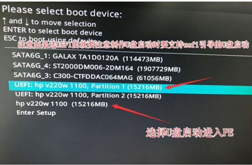 6、插入U盤啟動盤,重啟按ESC選擇識別到U盤啟動項,回車。