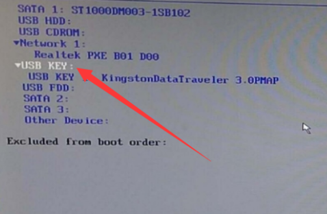 4、將usb key移動(dòng)到最上面,即可設(shè)置為u盤(pán)啟動(dòng)。然后按F10保存。
