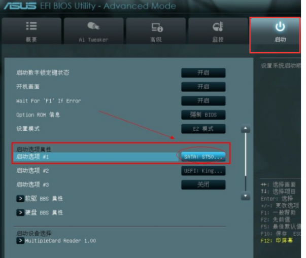 3、切換到“啟動”選項(xiàng)下,來到啟動選項(xiàng)屬性下的“啟動選項(xiàng)#1”。