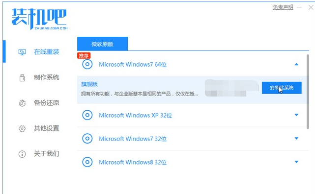 1、安裝好裝機(jī)吧一鍵重裝系統(tǒng)軟件并打開(kāi),下載安裝win7的64位系統(tǒng)