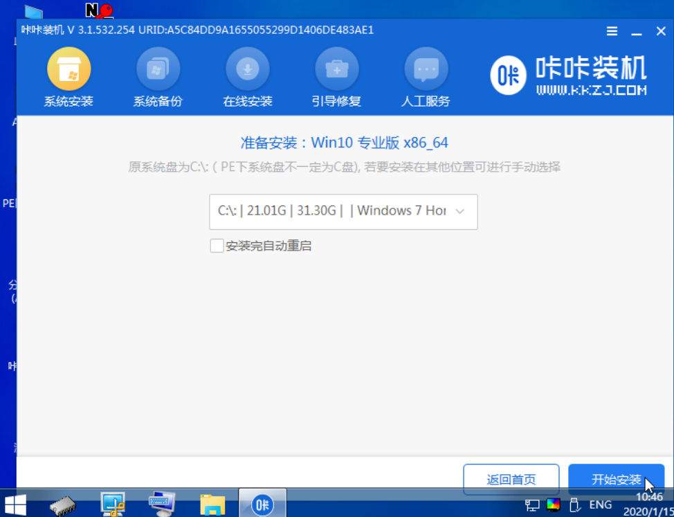6、將系統(tǒng)安裝到系統(tǒng)盤,點(diǎn)擊開始安裝。
