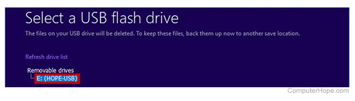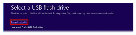 6、隨后系統(tǒng)將要求您選擇 USB 閃存驅(qū)動器。如果您的 USB 閃存驅(qū)動器未插入,請立即插入,然后稍等片刻并刷新驅(qū)動器列表即可。