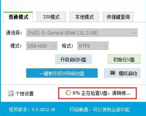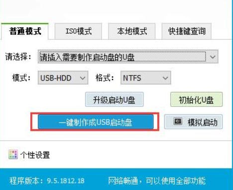 2、在普通模式下進(jìn)行選擇,依照默認(rèn)模式操作一鍵制作啟動(dòng)盤;
