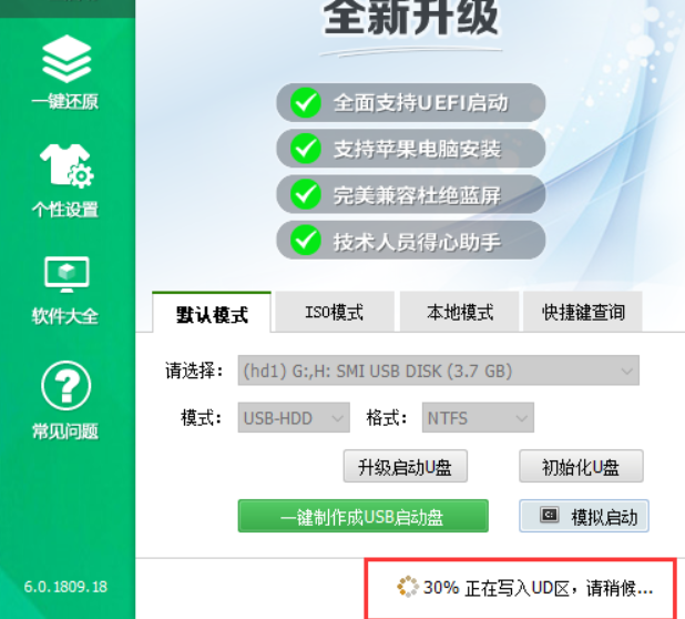 2、識(shí)別u盤后,一鍵制作啟動(dòng)盤;