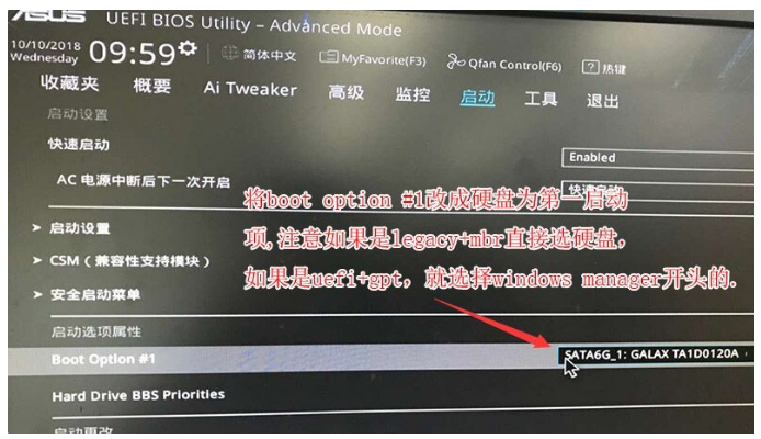 5、隨后將boot option#1選項(xiàng)改為普通引導(dǎo)的,設(shè)置第一啟動(dòng)項(xiàng)為普通硬盤(pán)引導(dǎo),若采用的是uefi+gpt的就要選帶Windwos Boot