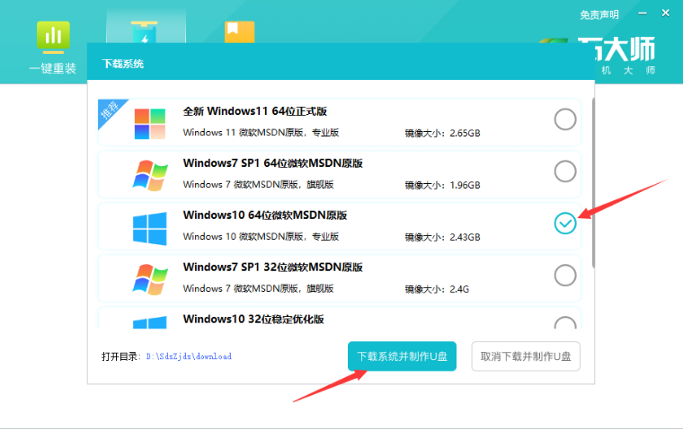 5、選擇自win10系統(tǒng)鏡像,點擊“下載系統(tǒng)并制作”。