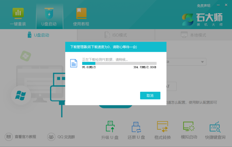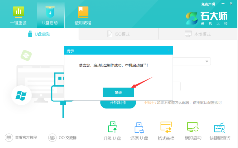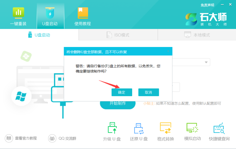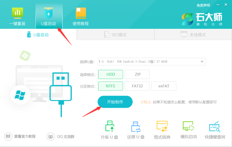 1、打開石大師,插入U盤,制作U盤啟動盤;