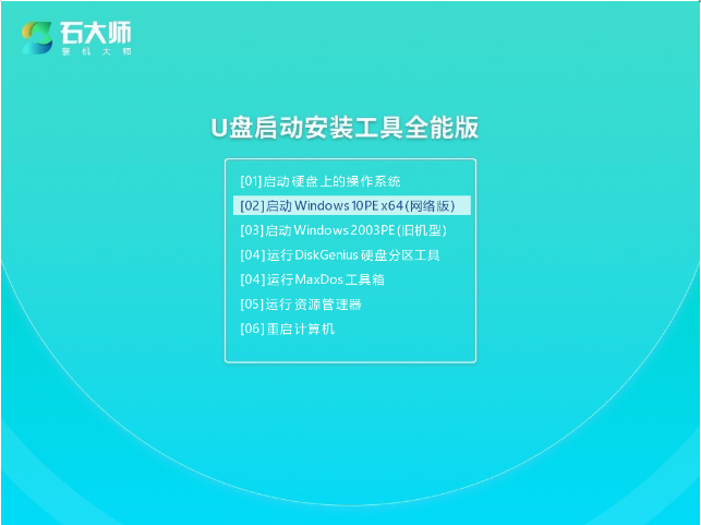 10、將制作好的U盤啟動盤插在需要重裝的電腦上,重啟電腦按快捷鍵選擇U盤進(jìn)行啟動,進(jìn)入后鍵盤↑↓鍵選擇第二個【02】啟動Windows10PE x64(網(wǎng)絡(luò)版),然后回車。