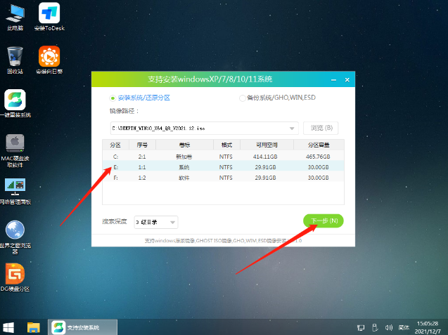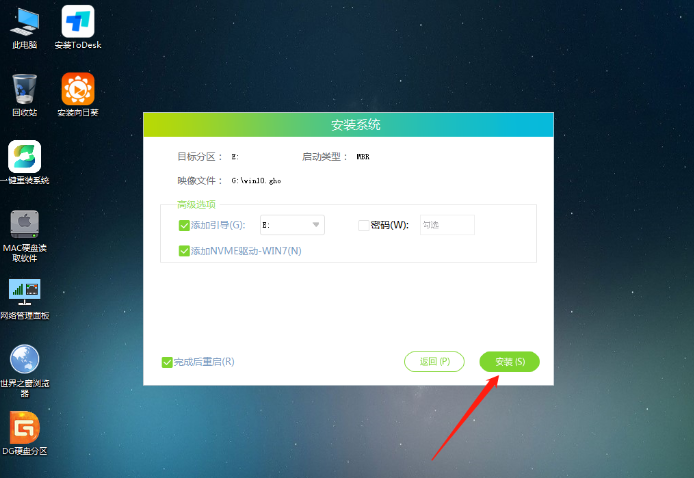 4、點擊鏡像文件安裝到c盤,重啟電腦進(jìn)入新系統(tǒng)。