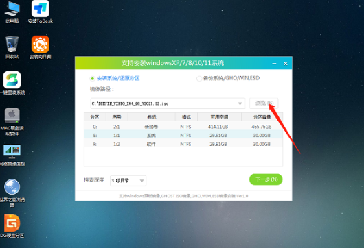 12、點擊瀏覽選擇U盤中的下載好的win10系統(tǒng)鏡像。
