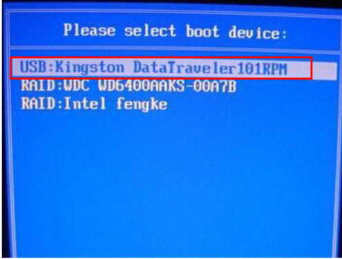 2、重啟電腦按下快捷鍵進入,設(shè)置U盤啟動項選擇進入pe系統(tǒng);