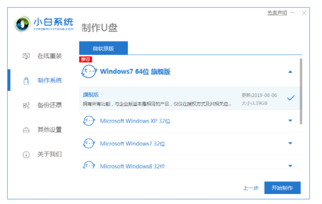 2、選擇自己想要安裝的系統(tǒng)半盤(pán)下載到U盤(pán)去。