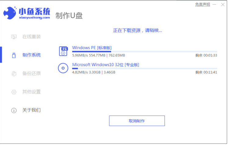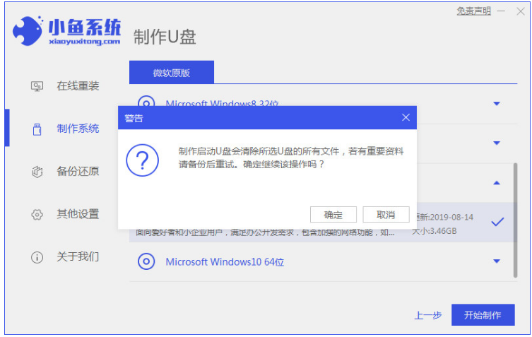 1、下載安裝小魚一鍵重裝系統(tǒng)軟件并打開,選擇制作U盤,點擊開始制作。