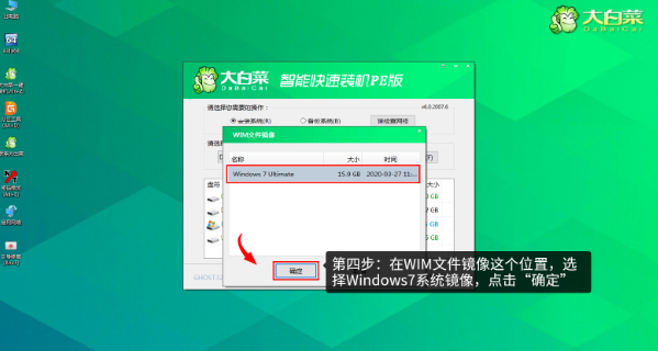 8、進(jìn)入到U盤位置點(diǎn)擊要安裝的windows系統(tǒng)打開,在WIM文件鏡像這個(gè)位置選擇windows系統(tǒng)鏡像點(diǎn)擊確定。