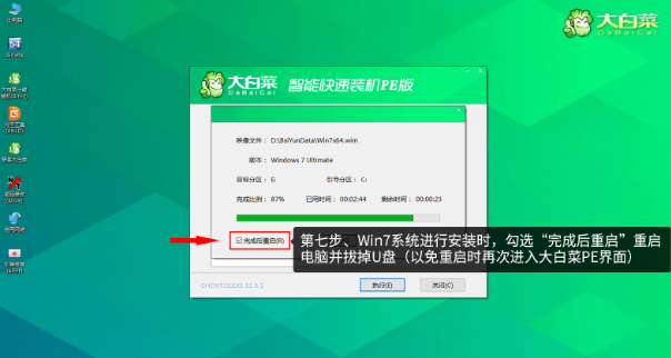 以上便是大白菜超級(jí)u盤啟動(dòng)制作工具的使用方法步驟,操作起來并不難,先制作好啟動(dòng)盤,然后啟動(dòng)進(jìn)入pe內(nèi)安裝,等待安裝完成即可。有需要的網(wǎng)友可參照教程操作。
