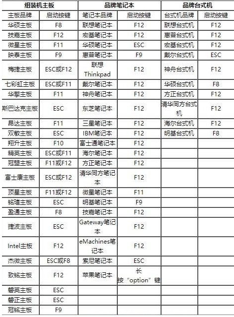 3、如下圖所示就是各種品牌/組裝電腦一鍵u盤啟動(dòng)快捷鍵表: