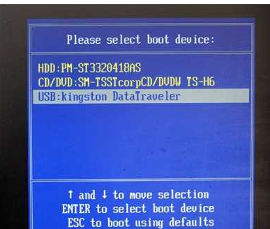 1、我們首先把U盤啟動(dòng)盤插到電腦,重啟電腦之后設(shè)置U盤啟動(dòng),快速按下熱鍵(如F12 F11 F9 F2 ESC 等)調(diào)出啟動(dòng)項(xiàng)選擇界面,如下圖所示。通過上下鍵找到USB開頭的就是U盤,按回車鍵就可以進(jìn)入u盤啟動(dòng)項(xiàng)選擇pe系統(tǒng)進(jìn)入啦。