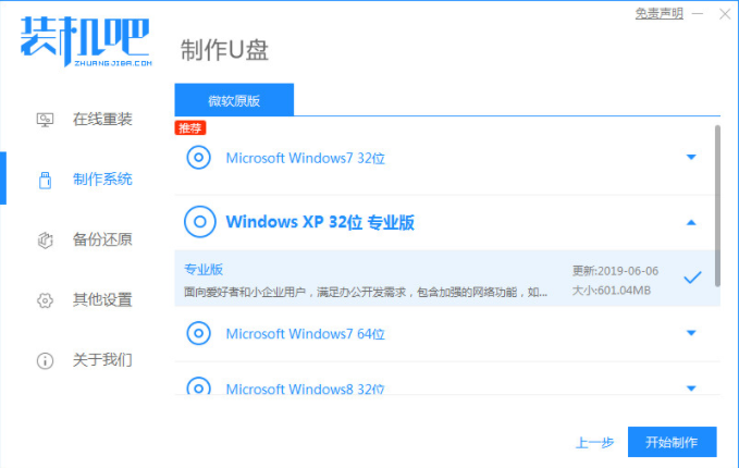 2、選擇需要的系統(tǒng),點擊開始制作。