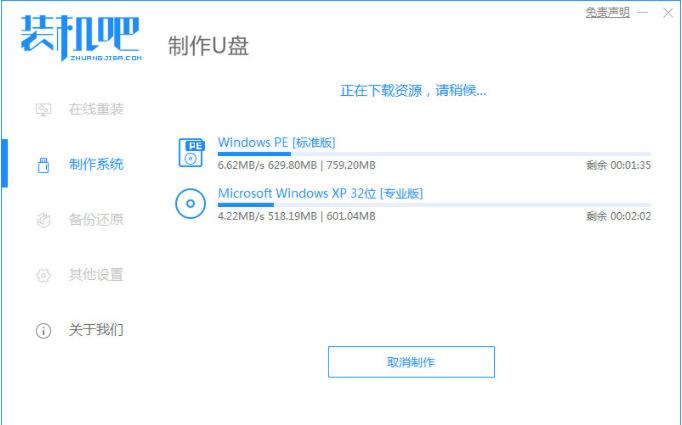 1、首先我們在電腦下載安裝裝機吧一鍵重裝系統(tǒng)軟件,準備一個8GB以上的U盤。點擊打開軟件之后,選擇制作系統(tǒng),選擇要制作的U盤,點擊開始制作。