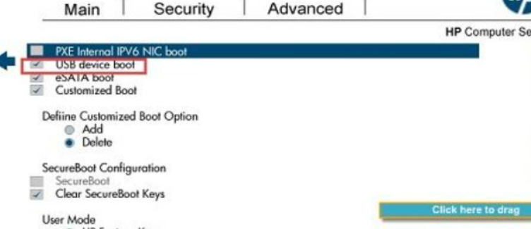 2、確認(rèn)我們的USB device boot 選項是勾選的。