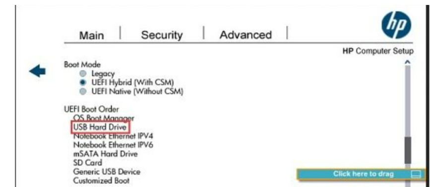 3、繼續(xù)向下拉,將UEFI Boot Order中的USB hard drive 提前,點擊Save保存重啟,然后我們就可以通過USB設(shè)備啟動。