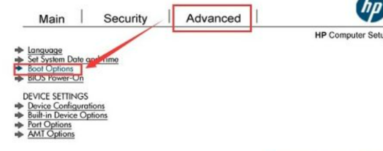 1、首先我們插入制作好的U盤啟動盤,開機(jī)不停點擊F10鍵進(jìn)入Bios,選擇Advanced(高級),選擇Boot Option(啟動選項)進(jìn)入。