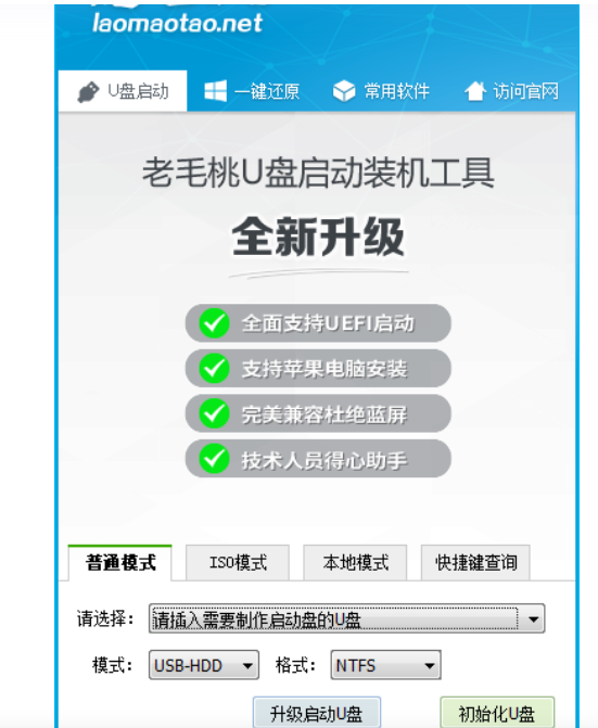 軟件版本:老毛桃u盤啟動(dòng)盤制作工具
