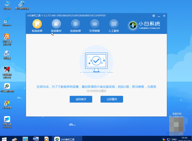 6、系統(tǒng)安裝完成后,點擊立即重啟電腦。