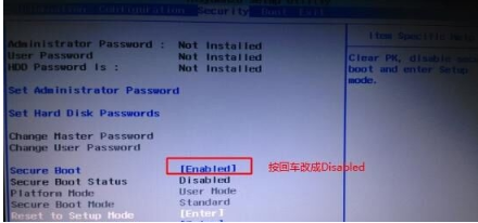 1、聯(lián)想bios設(shè)置u盤啟動項怎么操作?重啟電腦時快速按F2或(FN+F2)進入BIOS界面,通過方向鍵切換【Security】選項卡界面下,選擇【Secure Boot】按回車鍵修改成【Disabled】即可。