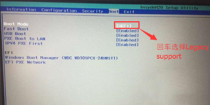 3、切換到【Boot】選項界面下,將【Boot Mode】改成【Legacy Support】即可。