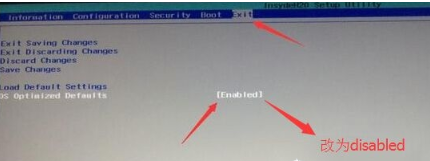 2、切換到【Exit】選項界面下,將【OS Optimized Defaults】設(shè)置為【Disabled】即可。