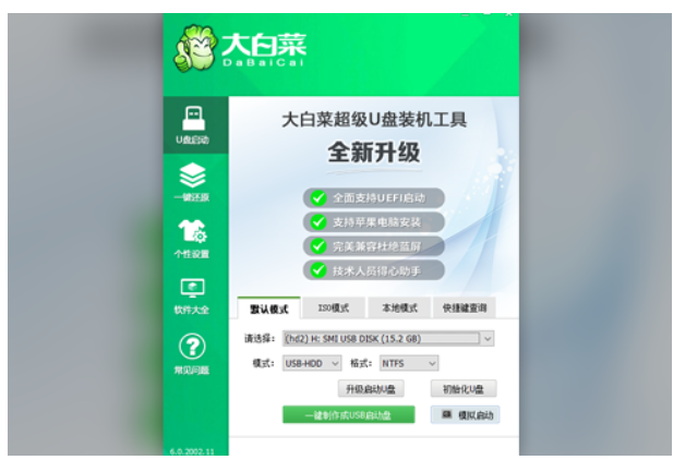 軟件版本:大白菜U盤(pán)啟動(dòng)工具