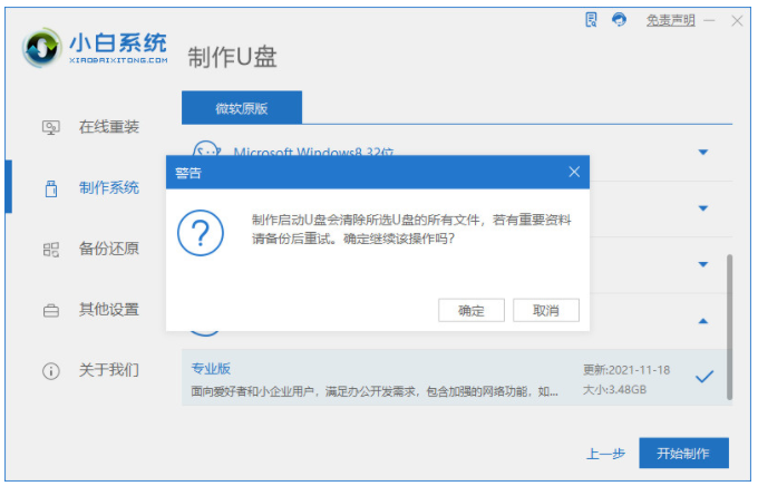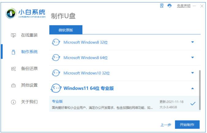 2、選擇自己需要的系統(tǒng)版本,點擊開始制作。