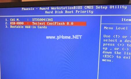 4、選擇USB-HDD按加減號(hào)或F5/F6或PageUP/PageDown,移動(dòng)到第一位置,按F10回車重啟;