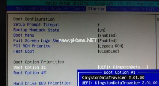 6、選擇Boot Option #1回車,選擇U盤選項(xiàng),回車;
