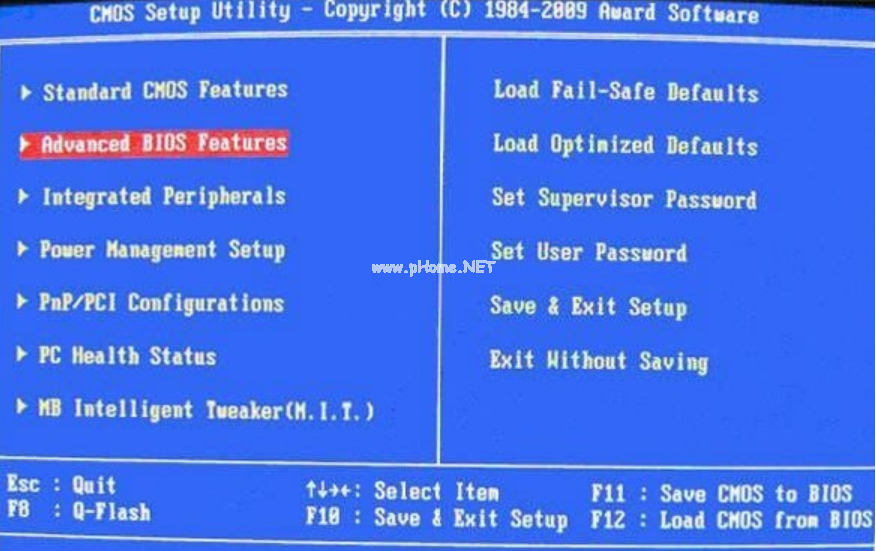 1、給電腦開機(jī),期間不斷按Del鍵進(jìn)入BIOS設(shè)置界面,選擇高級(jí)BIOS設(shè)置:Advanced BIOS Features回車進(jìn)入。