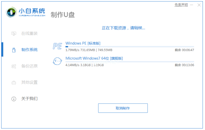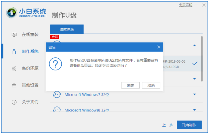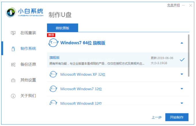 2、選擇windows7系統(tǒng)之后,點擊開始制作。