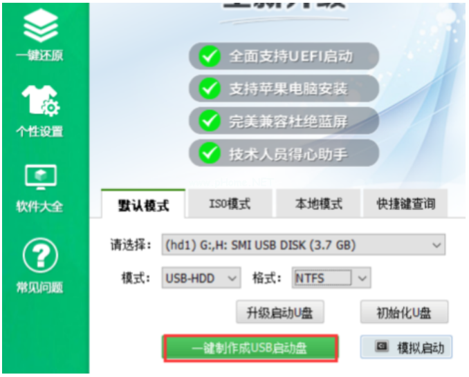 3.點擊USB-HDD,選擇NTFS,接著勾選一鍵制作USB啟動盤。