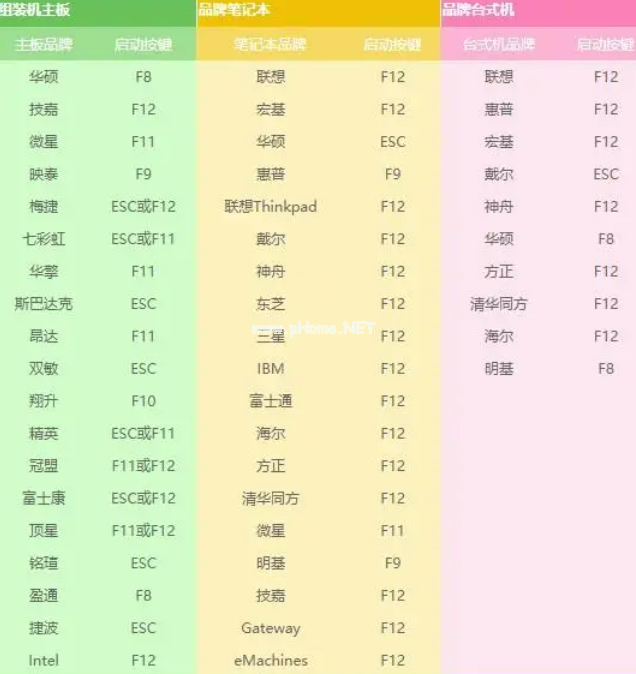 在設置u盤啟動之前,很有必要了解一下常規(guī)的電腦u盤啟動的快捷鍵,如圖所示: