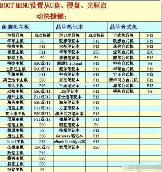 5、以下就是電腦開機(jī)啟動(dòng)快捷鍵,大家可以參考。