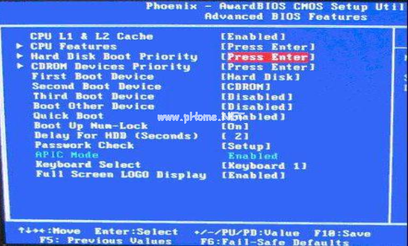 2、高級BIOS設(shè)置(Advanced BIOS Features)界面,首先選擇硬盤啟動優(yōu)先級:Hard Disk Boot Priority