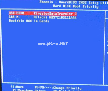 3、硬盤啟動優(yōu)先級(Hard Disk Boot Priority)選擇:使用小鍵盤上的加減號“+、-”來選擇與移動設(shè)備,將U盤選擇在最上面。然后,按ESC鍵退出,回到第2步的設(shè)置界面。