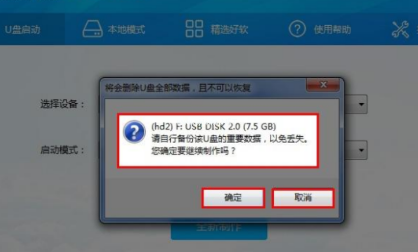 2、注意備份U盤(pán)數(shù)據(jù),點(diǎn)擊確定。