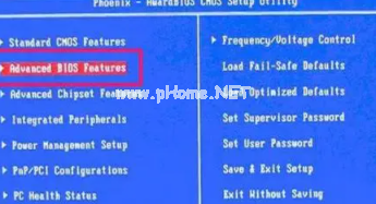 1.大多數(shù)開機(jī)后進(jìn)入BIOS,選擇AdvancedBIOS進(jìn)入后。按Enter進(jìn)入Features這一項(xiàng)。