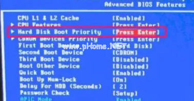 2.找到HardDiskBootPriority,即優(yōu)先啟動(dòng)硬盤,按Enter確認(rèn)。