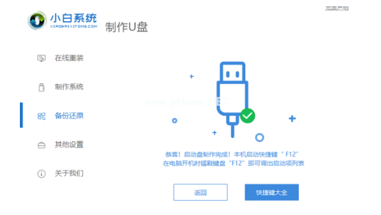 5、提示U盤制作完成后,然后點(diǎn)擊快捷鍵大全。