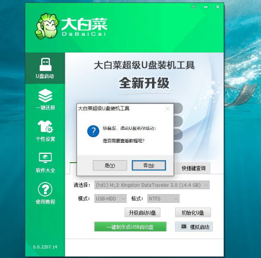 4.頁(yè)面提示大白菜u盤啟動(dòng)盤制作完成提示后,根據(jù)需要點(diǎn)擊操作即可。
