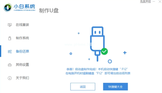 5、完成資源和驅(qū)動(dòng)下載后,自動(dòng)進(jìn)行制作完成后,可先預(yù)覽下電腦啟動(dòng)快捷鍵,至此,小白啟動(dòng)u盤制作完成,可以用它來進(jìn)行電腦的修復(fù)或者重裝系統(tǒng)等操作。
